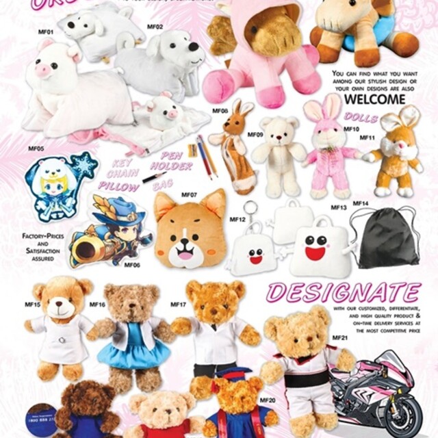 ผู้ผลิตและจำหน่ายสินค้าประเภทงานผ้า ได้แก่ ตุ๊กตา หมอน กระเป๋า ถุงผ้า หน้ากากผ้า และสินค้าเกี่ยวกับงานผ้าอื่นๆ ตามความต้องการของลูกค้าทั้งในด้านรูปแบบ วัสดุ งบประมาณ สำหรับเป็นของขวัญ ของรางวัล ของชำร่วย ฯ เพื่อใช้ส่งเสริมการขายหรือกิจกรรมทางการตลาดต่างๆ